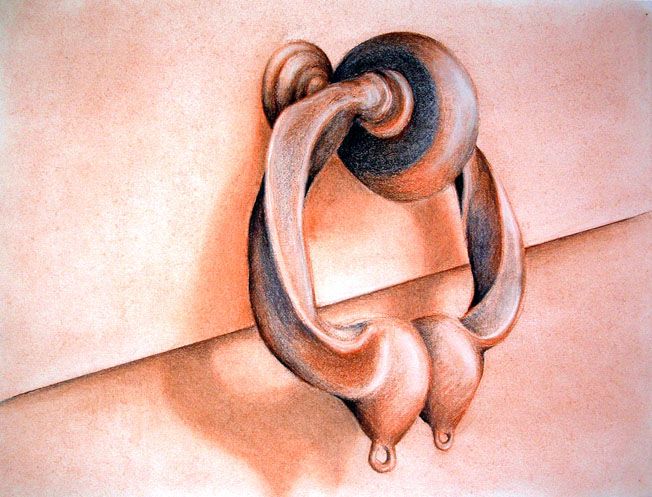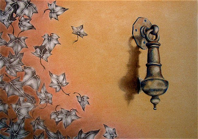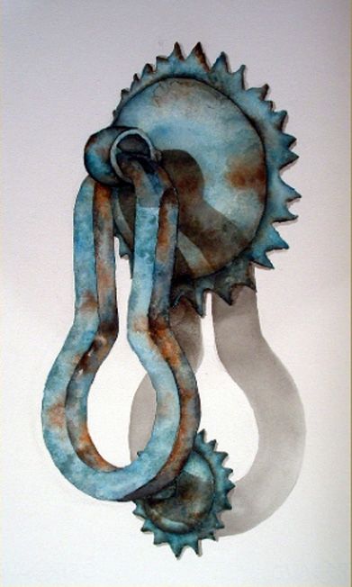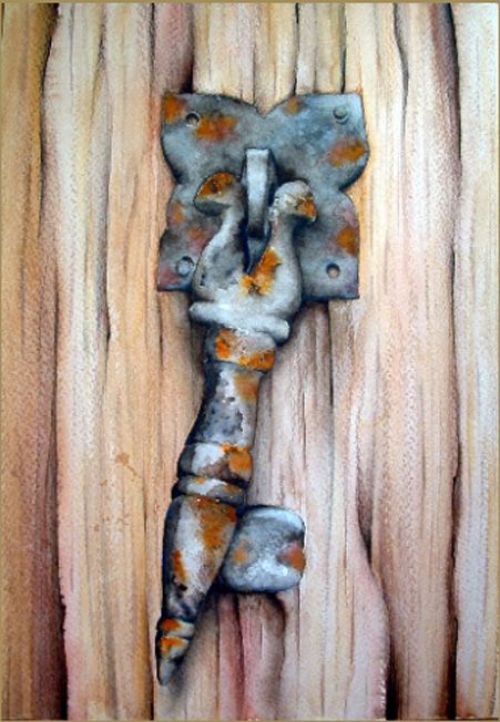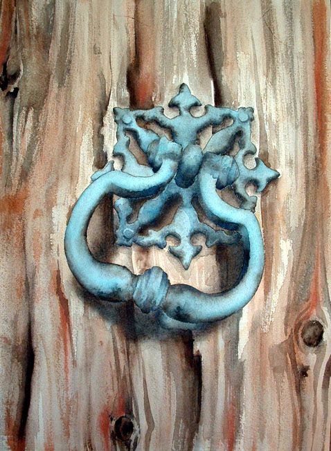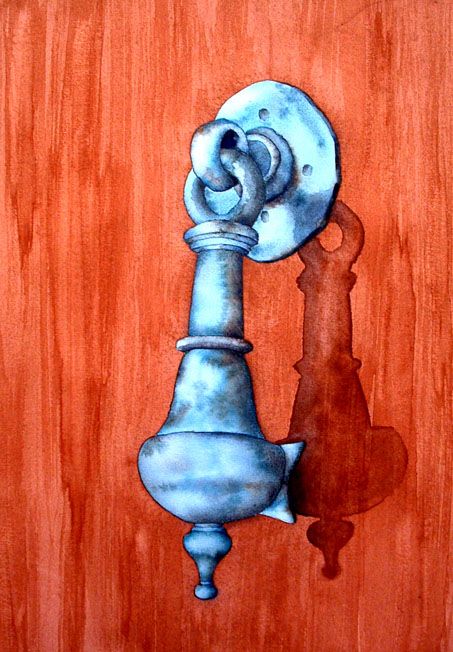 Serie: Aldabas. Acuarelas y dibujos sobre papel teñido a mano (pulse sobre las imágenes, para ampliarlas).